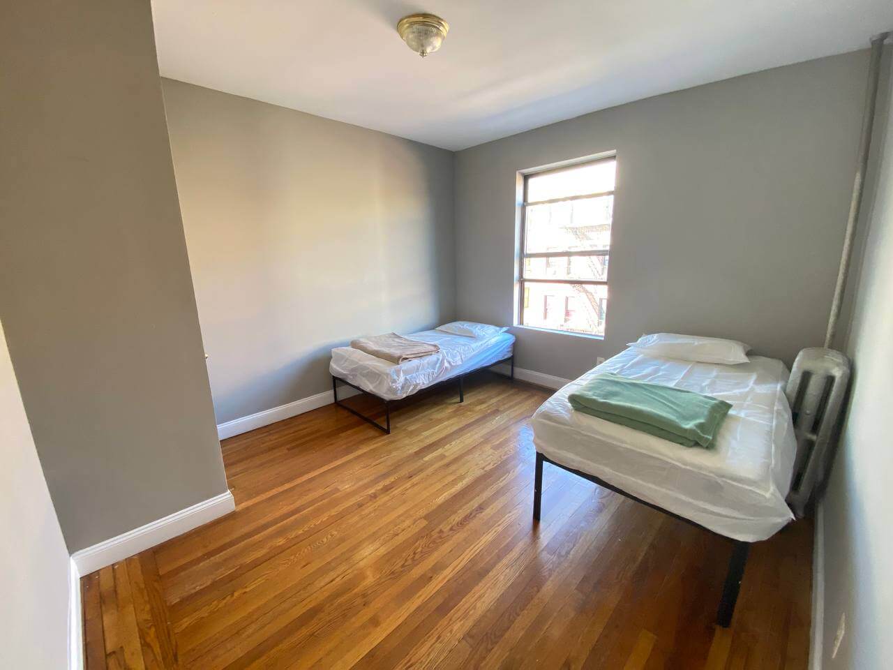 A bright big room with street facing windows. Full size bed or 2 twin size beds.