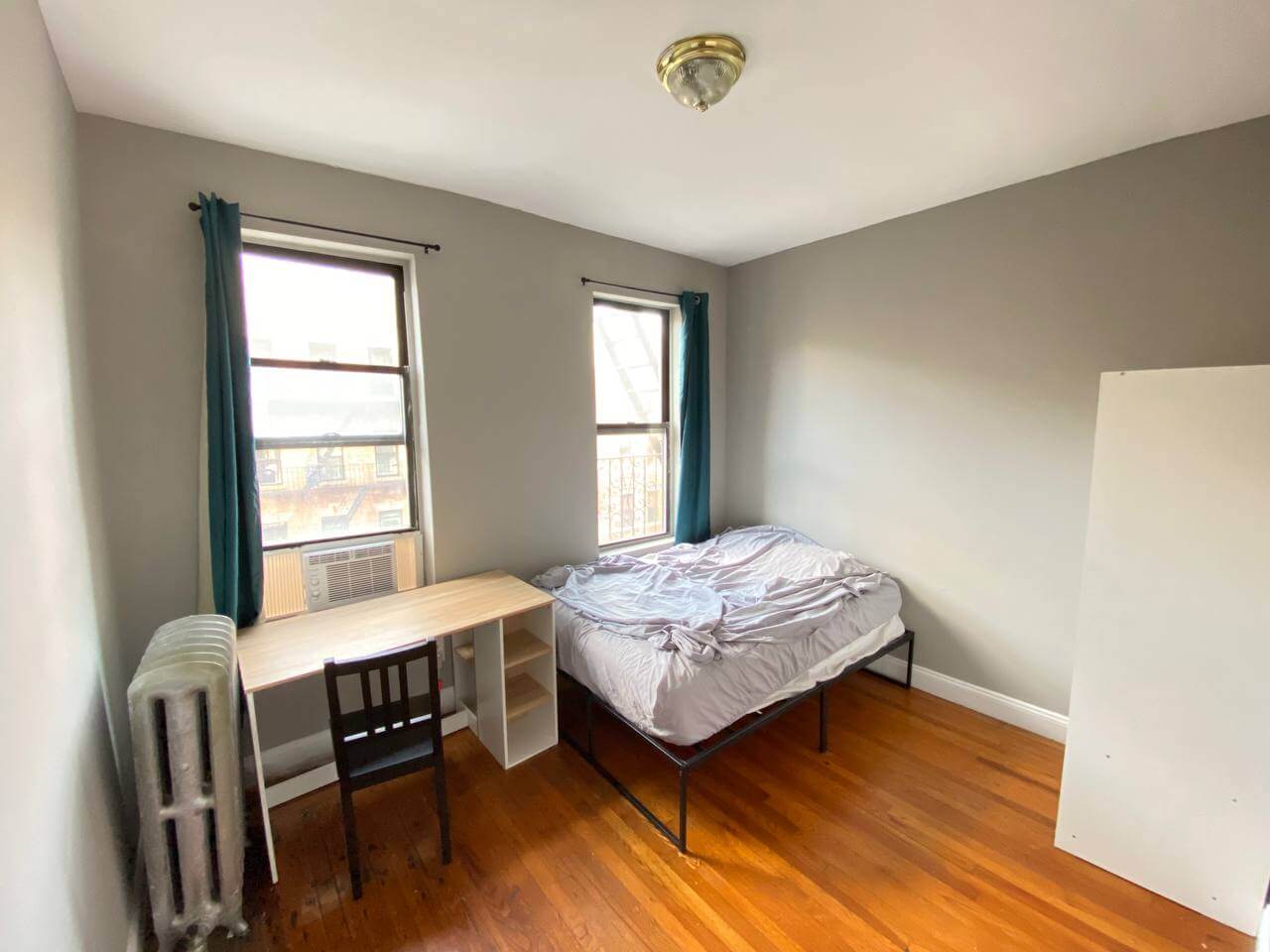 A bright big room with street facing windows. Up to 2 person in room. Air conditioning, closet.